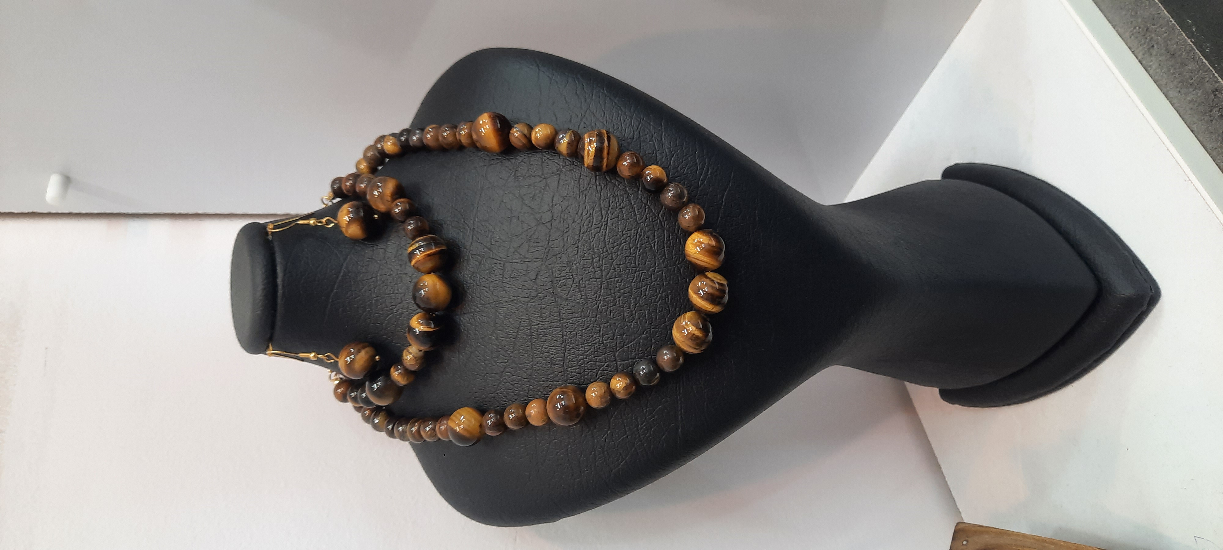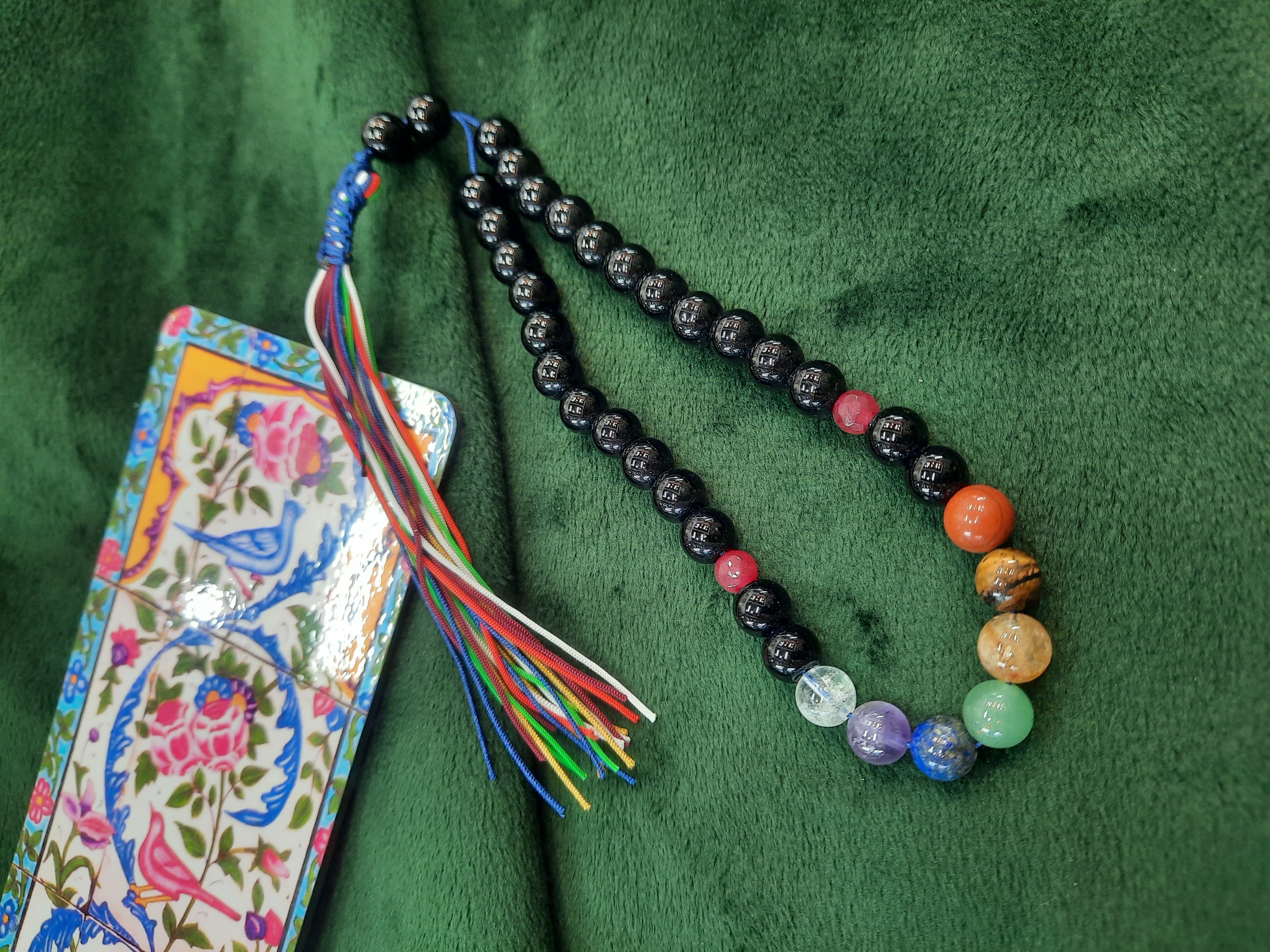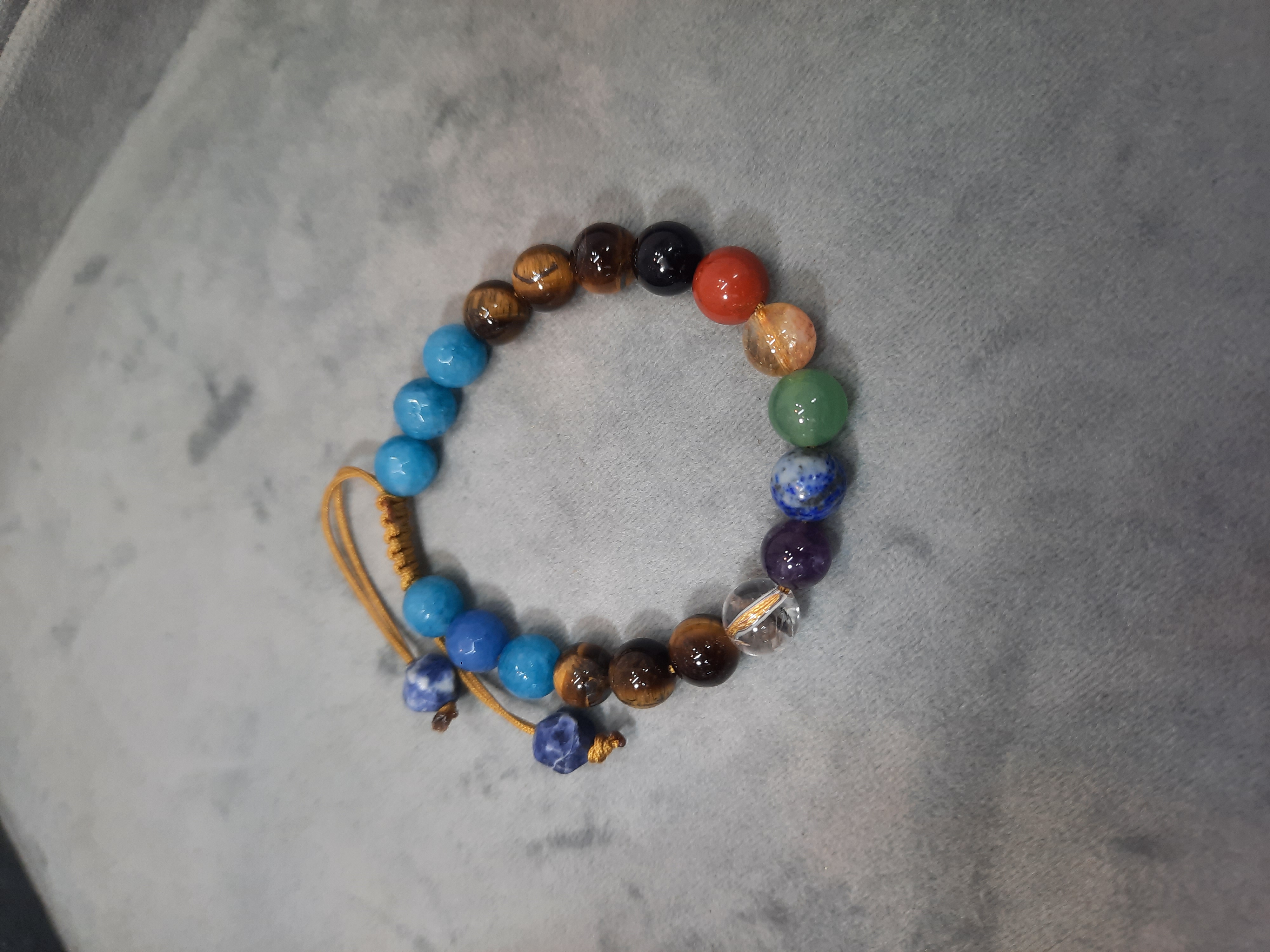 دستبند ست سنگی هفت چاکراه و چشم ببر