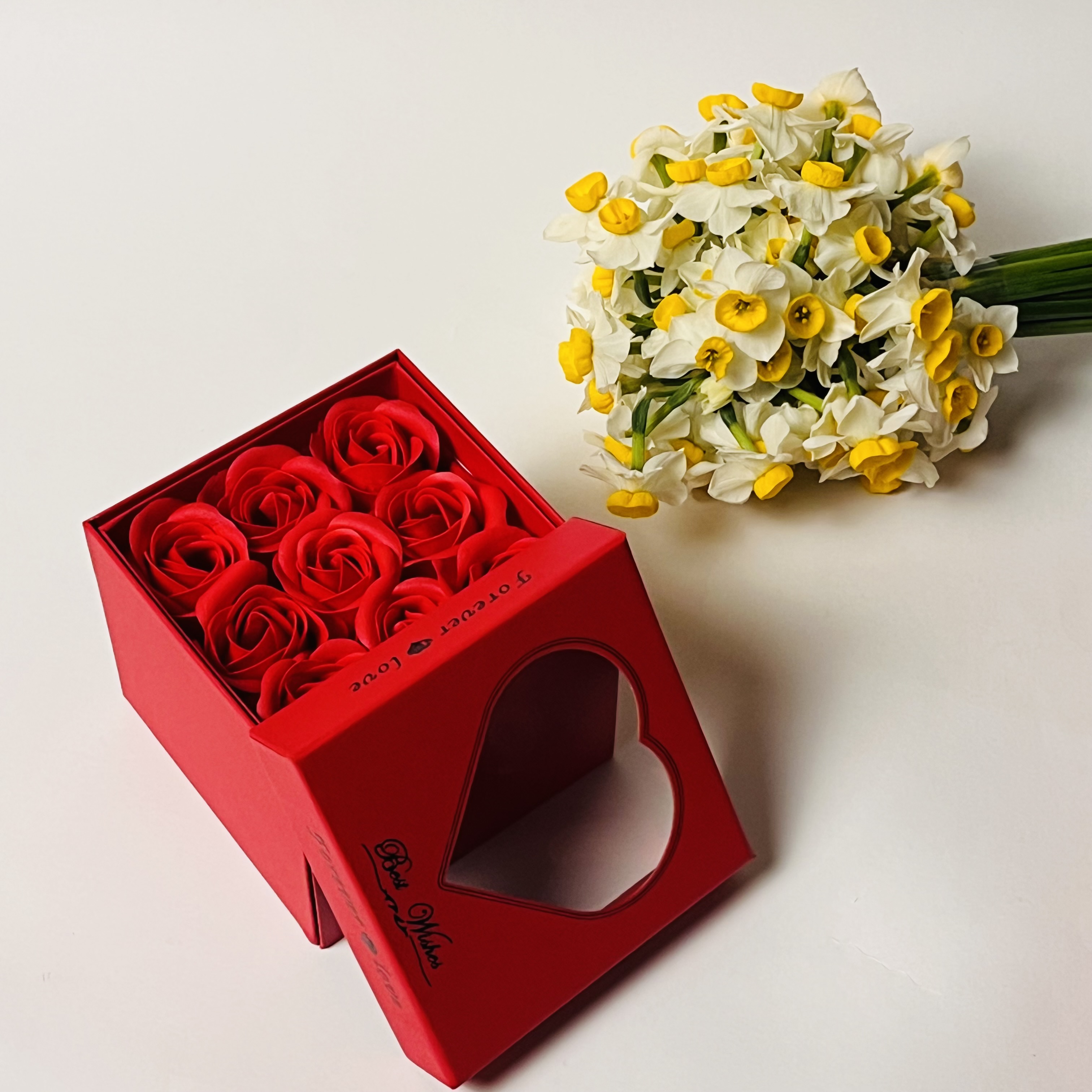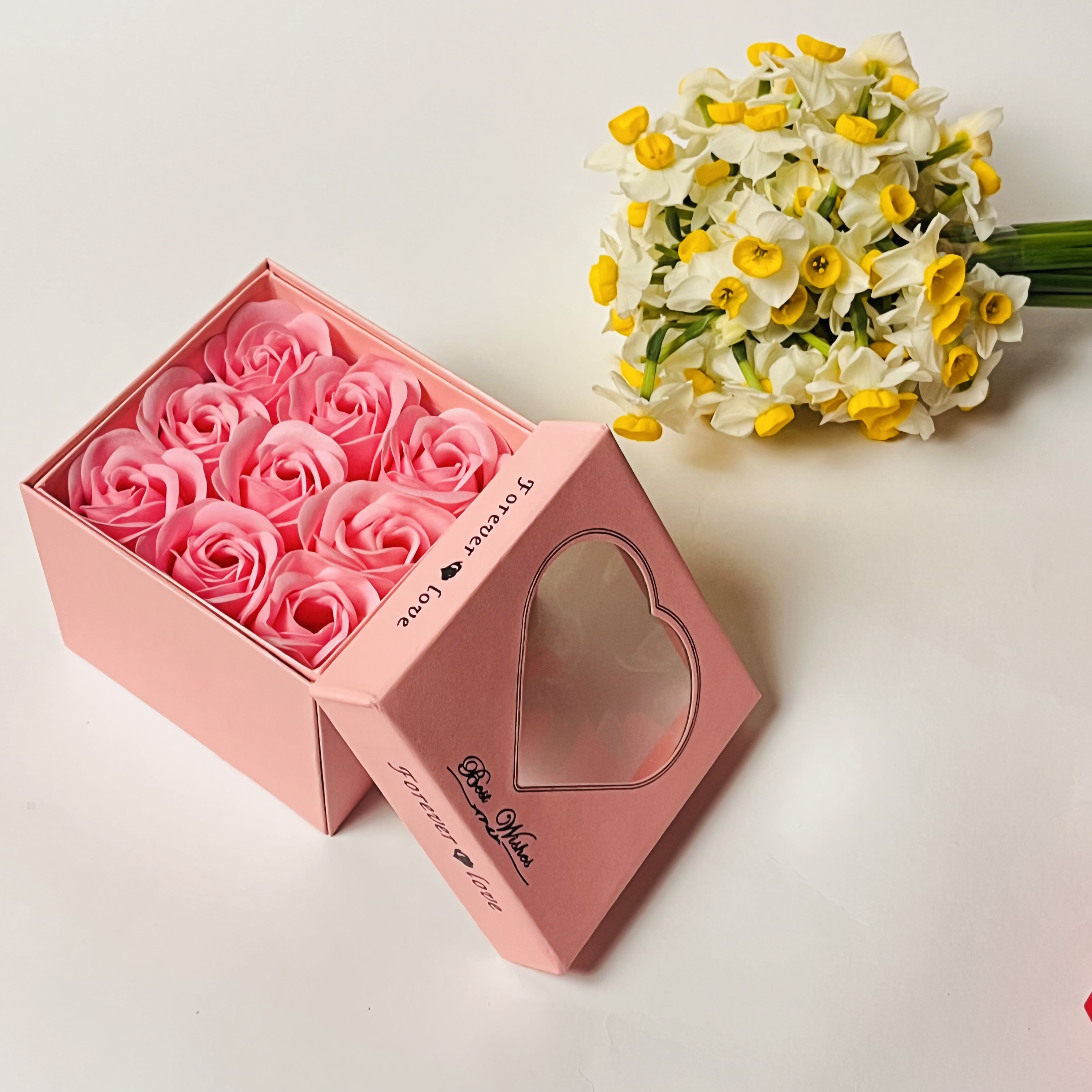 باکس سورپرایزی رز جاودان (۹گل) مناسب نیمست