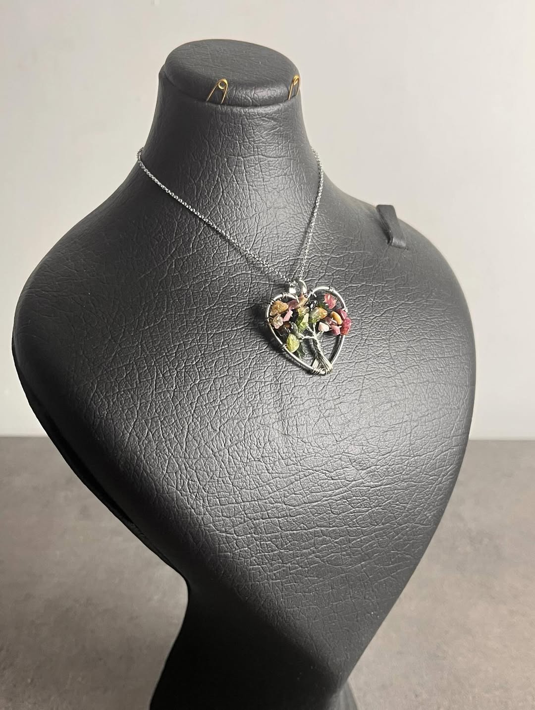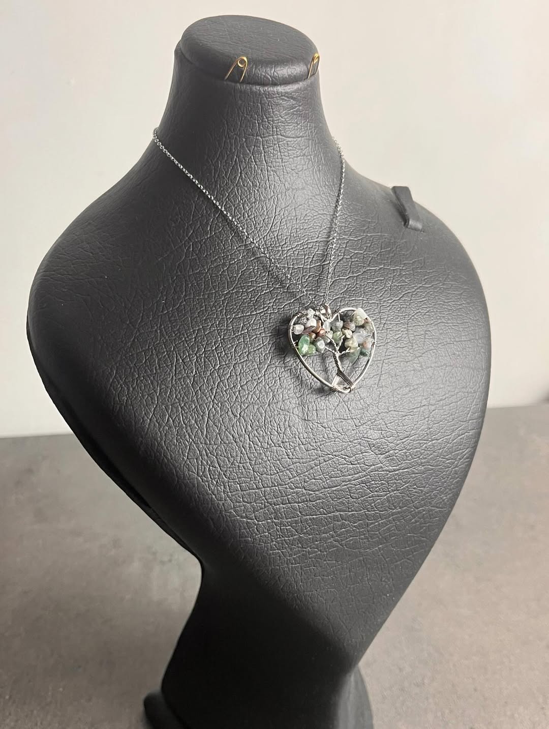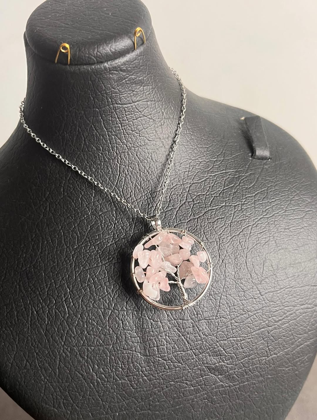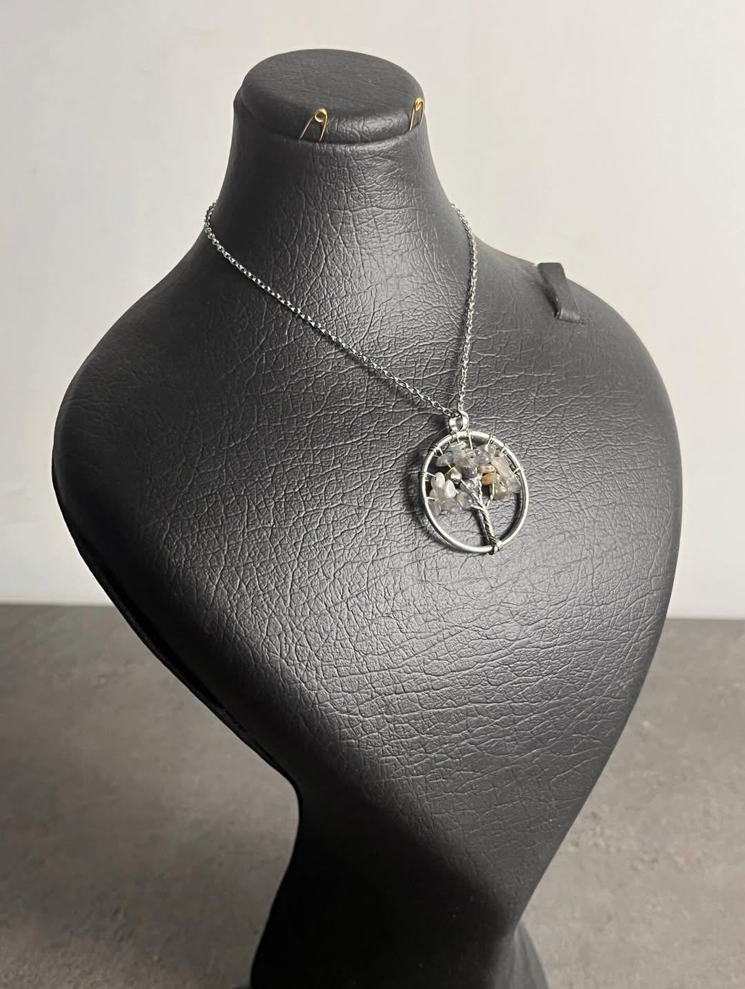 گردنبتد سنگی درخت زندگی با زنجیر استیل