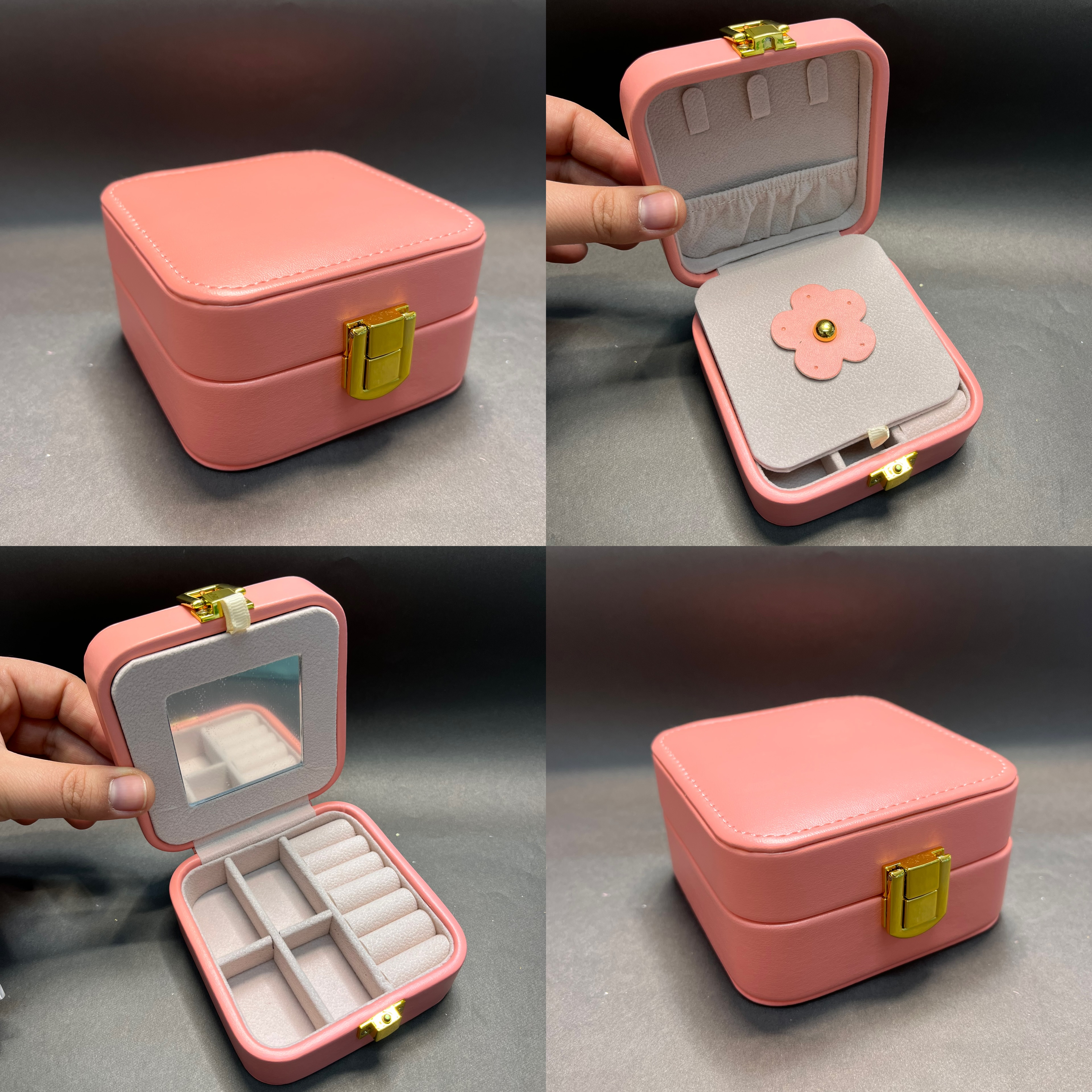 کیف جواهرات تمام چرم آینه دار